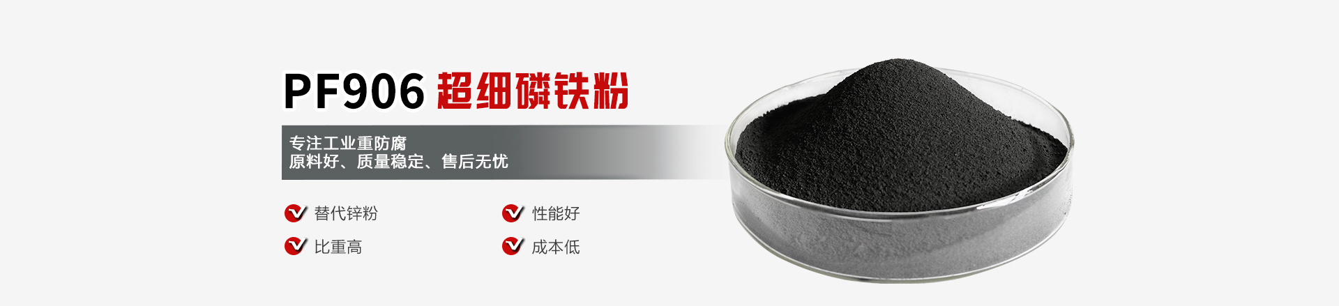 PF906超細磷鐵粉選用本公司優勢產品——精煉磷鐵,聯合科研單位共同開發,采用進口設備加工而成,粒度可達500至1200目。無毒,無臭,無異味;導電性、導熱性良好,耐高溫500C至1320°C;具有防腐蝕、耐磨,附著力強等優點。可顯著改進涂膜性質及重防腐富鋅涂料焊接特性,減少富鋅涂料焊接切割產生的鋅霧,改善工作環境,提高勞動保護水平。