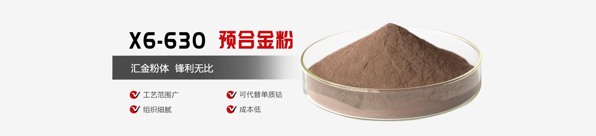 ①高端強化型粉末,組織細膩,工藝范圍廣。②可代替配方中部分單質鈷,降低生產成本。