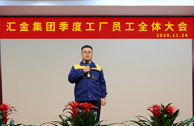 2020年11月24日,匯金集團(tuán)第四季度工廠員工大會(huì)在匯金生產(chǎn)中心三樓報(bào)告廳成功召開。匯金集團(tuán)董事長(zhǎng)郭榮勛、CEO兼總裁孔攀紅、生產(chǎn)總監(jiān)鞏康如及工廠全體員工隆重出席此次會(huì)議。