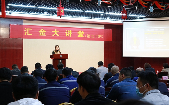 2021年4月7日,第二十期“匯金大講堂”在匯金集團(tuán)生產(chǎn)中心多媒體報(bào)告廳正式啟動(dòng)。匯金集團(tuán)董事長(zhǎng)郭榮勛先生、CEO兼總裁孔攀紅女士以及全體中高管、銷售人員、工廠員工準(zhǔn)時(shí)參加了此次課堂活動(dòng)。本期大講堂由集團(tuán)公司CEO兼總裁孔攀紅和匯金智能裝備提產(chǎn)、篦冷機(jī)改造事業(yè)部經(jīng)理趙園園為大家?guī)砭史窒怼?