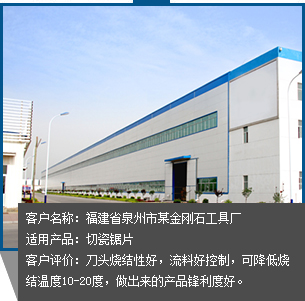 泰和匯金專業針對金剛石切割工具鋒利度和耐磨度相互矛盾問題做了專項性研究,2008年,泰和匯金攻克技術難關專門和鄭州大學、北京的教授一起研究出了具有劃時代意義的金剛石工具胎體配方。實驗證明,HJ加強合金粉Ⅰ號使用量只需為添加胎體配方的6-15%,鋒利度就可以在原有性能的基礎上提高16-30%,同時使用壽命也能延長10-28%。